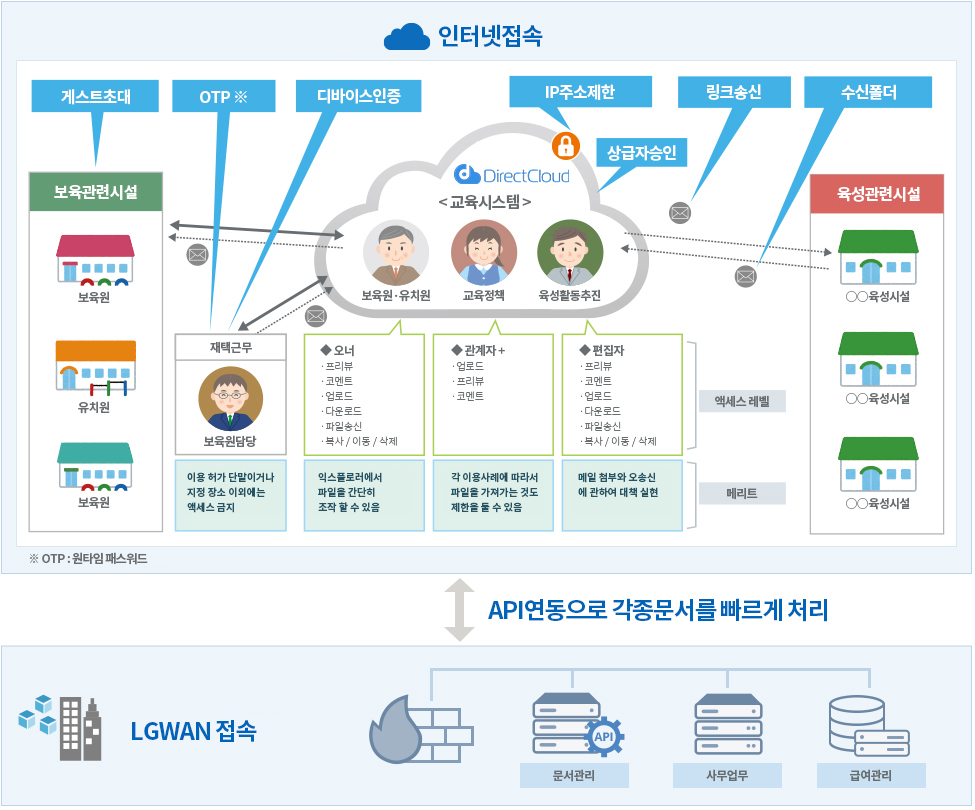 DirectCloud는 행정 기관과의 파일 공유뿐만 아니라 조직 내에서의 스토리지 내부에서 공동 작업까지 안전하고 원활하게 작업할 수 있습니다